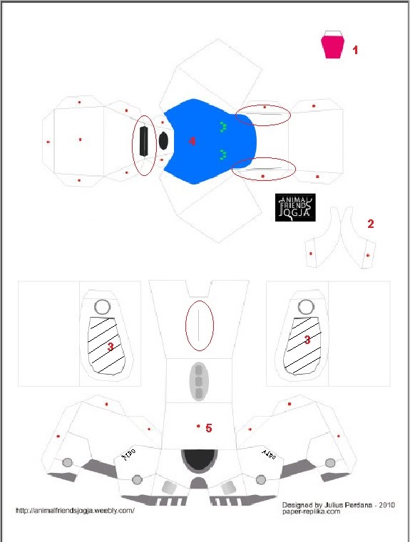 Pertama-tama kita harus menDOWNLOAD template atau pola papercraftnya DI SINI. Template ini harus di print di kertas yang agak tebal, seperti kertas buffalo, atau kertas buku gambar ukuran A4.
